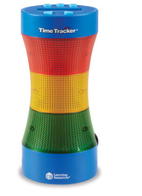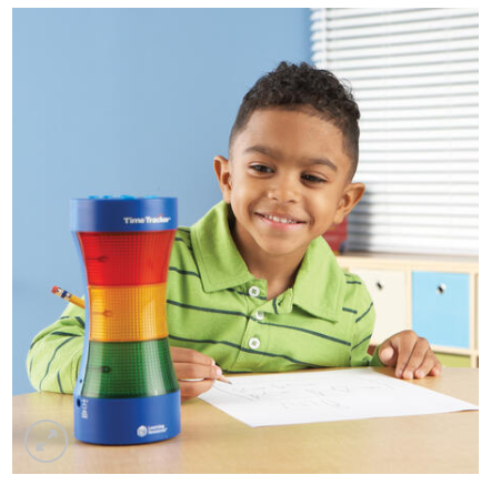 Gestión del tiempo – Las luces se corresponden con el tiempo que queda, verde y amarillo, y terminan en rojo para fomentar y mejorar las habilidades de gestión del tiempo y facilitar las transiciones de una actividad a la siguiente.